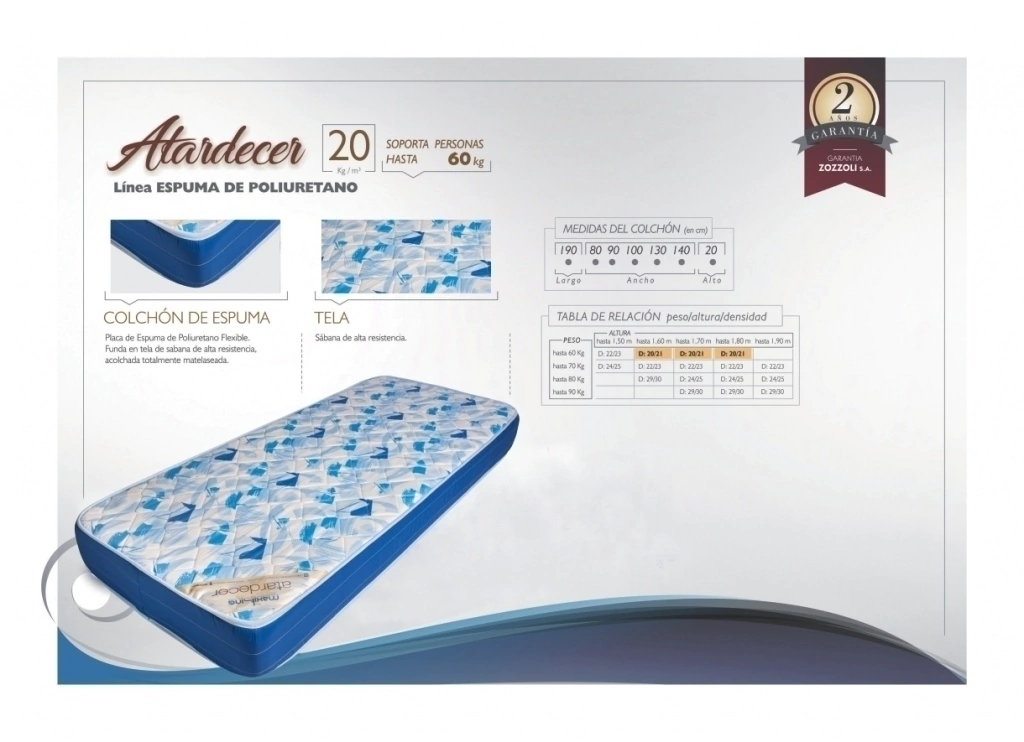 El Colchón Atardecer de 80x190x20 cm ofrece una combinación perfecta de suavidad y soporte. Su espuma de alta densidad se adapta al contorno del cuerpo, brindando un descanso confortable y reparador. Ideal para quienes buscan calidad y confort en un colchón de una plaza.